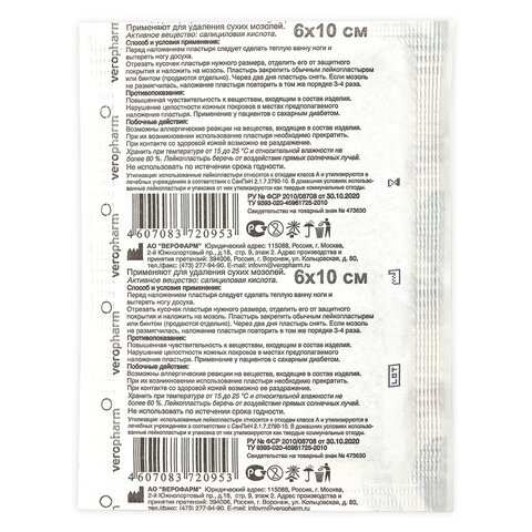Салициловый лейкопластырь САЛИПОД для лечения сухих мозолей и натоптышей.