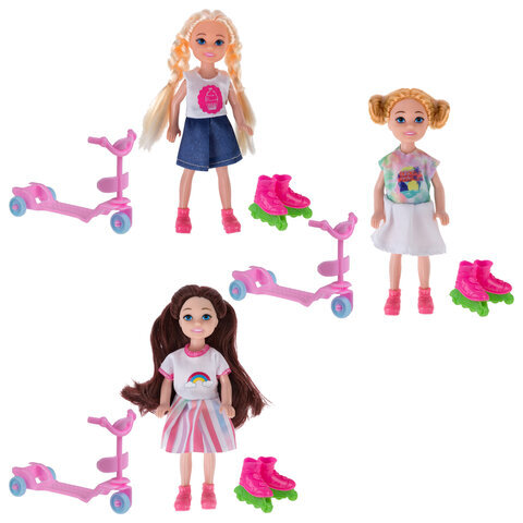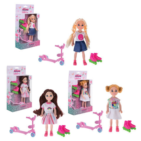 КУКЛА "Alisa Little Love", НАБОР, с самокатом и роликами, 14,4 см, АССОРТИ, 3 вида, 1TOY