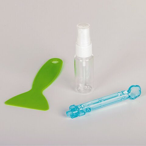 Комплектация бусины, бутылочка-пульверизатор, лопатка, подставка, трафарет