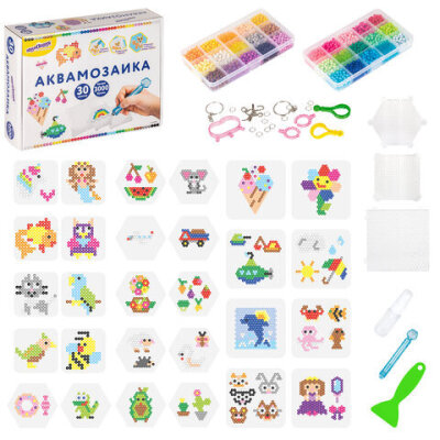 Аквамозаика, 30 цветов, 3000 бусин, в колорбоксе, ЮНЛАНДИЯ, 663780