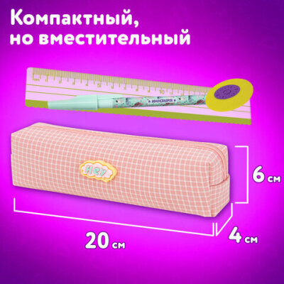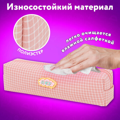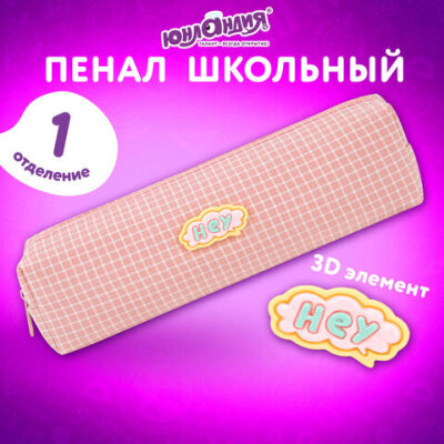 Пенал ЮНЛАНДИЯ ЮНИОР, 1 отделение, полиэстер, аппликация, "Hey", 20х6х4 см, 273801