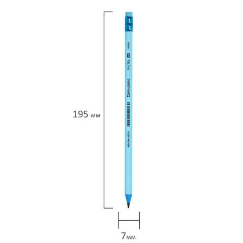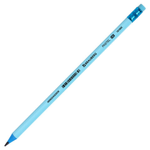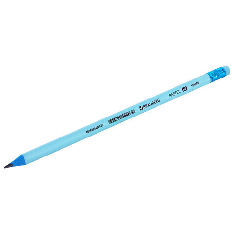 Карандаш чернографитный BRAUBERG "PASTEL", 1 шт., HB, трехгранный, с ластиком, 181995