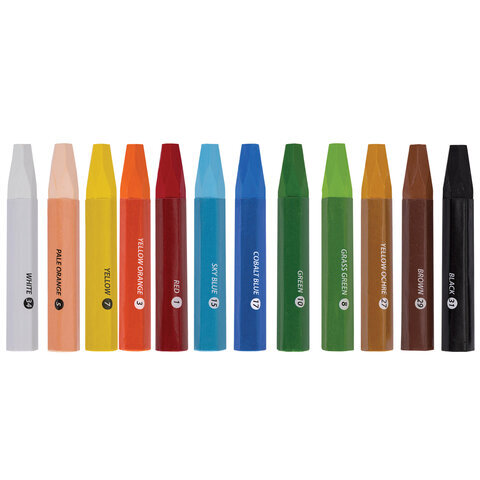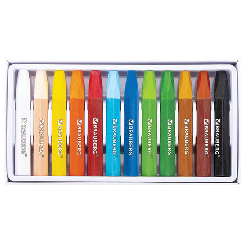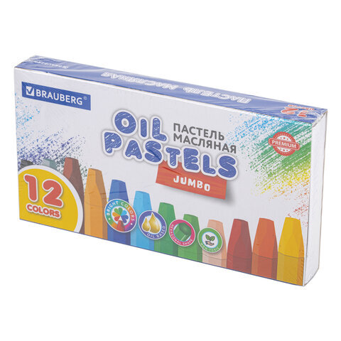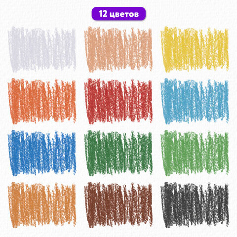 Пастель масляная восковые мелки утолщенные 12 цветов, BRAUBERG PREMIUM, 272711