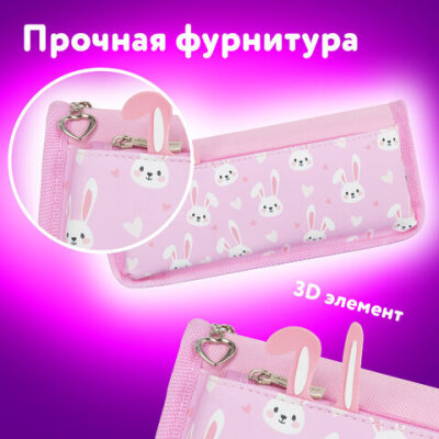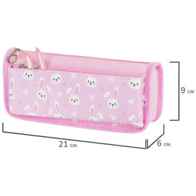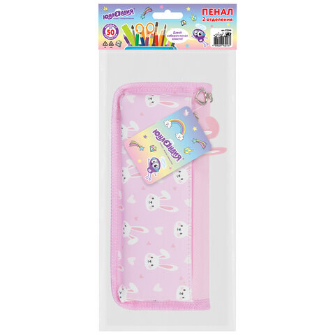 Пенал мягкий ЮНЛАНДИЯ, 2 отделения, полиэстер, "Bunnies", розовый, 21х9х6 см, 272346