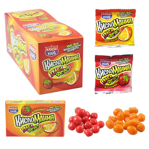 Жевательные конфеты "Кисломания дабл фрукт" апельсин и клубника, 14 г, КАНДИ КЛАБ, CHW040