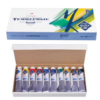 Краски темперные художественные "Мастер-класс", НАБОР 10 цветов по 46 мл, в тубах, без кисти, Невская Палитра, 1641032