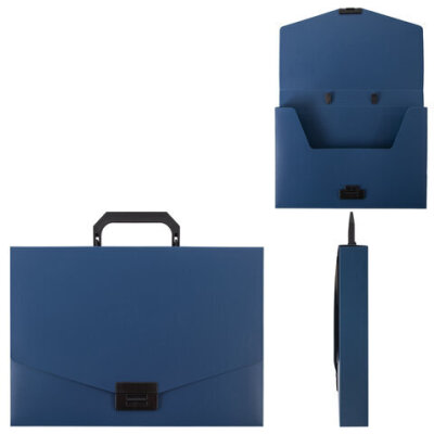 Портфель пластиковый STAFF А4 (320х225х36 мм), без отделений, синий, 229240