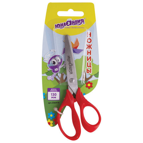 Ножницы ЮНЛАНДИЯ "ВЕТЕРОК", 130 мм, ассиметричные ручки, упаковка с подвесом, ассорти, 236979