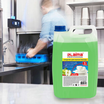Средство для мытья посуды 5 л, LAIMA PROFESSIONAL, концентрат, "Яблоко", 604651