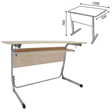 Стол-парта 2-местный нерегулируемый "Атлант", 1200х500х760 мм, рост 6, серый каркас, ЛДСП клён