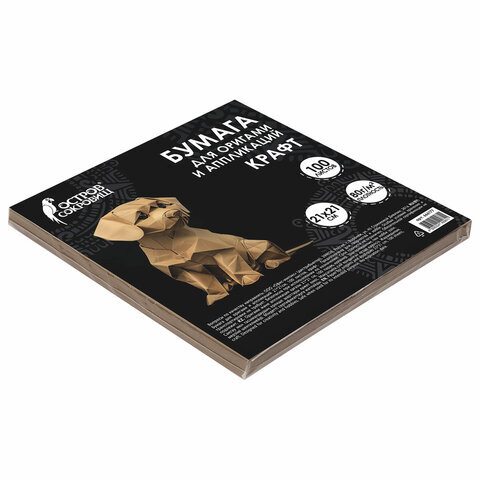 Бумага для оригами и аппликаций 21х21 см, 100 листов, крафт, ОСТРОВ СОКРОВИЩ, 666177