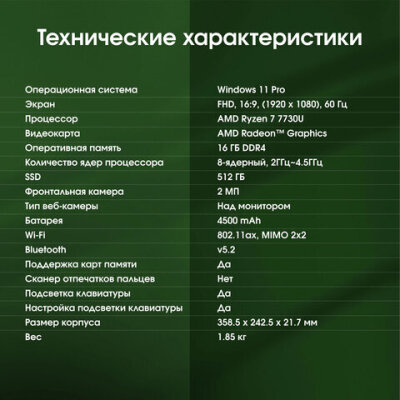 | Объем твердотельного накопителя (SSD) | 512 ГБ |