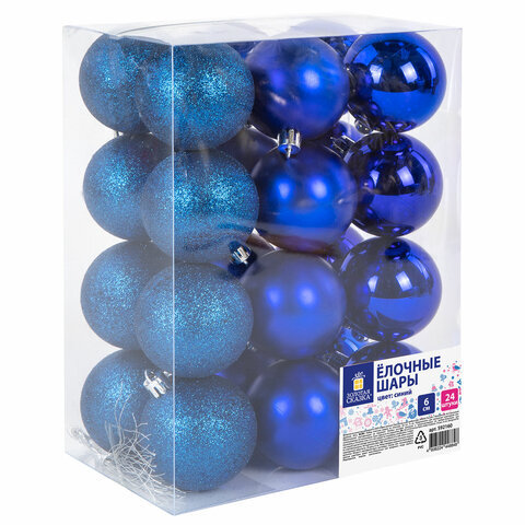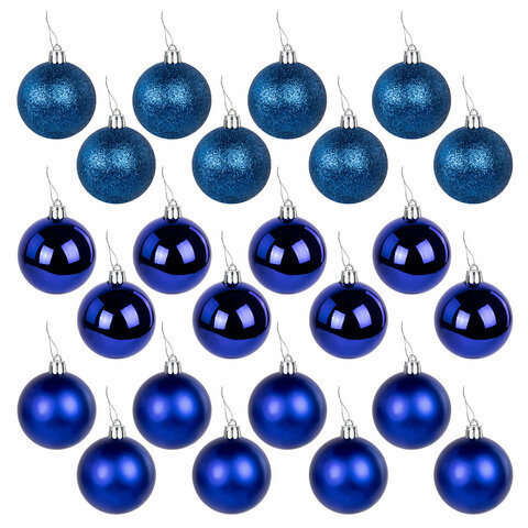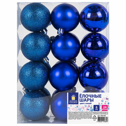 Шары ёлочные 24 шт., 6 см, "Trio", пластик, СИНИЕ (глянец, матовый, глиттер), ЗОЛОТАЯ СКАЗКА, 592160