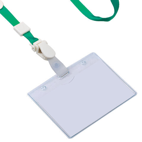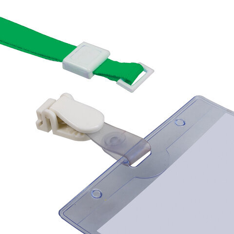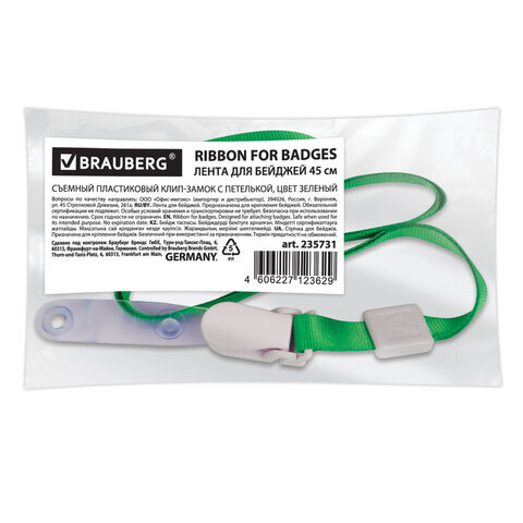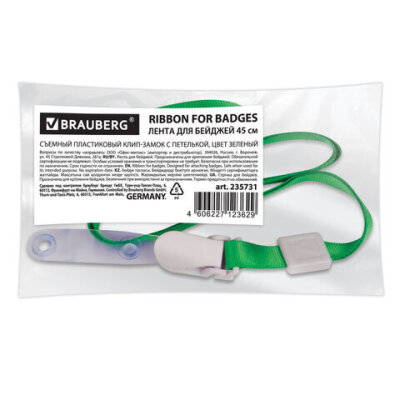 Лента для бейджей, 45 см, съемный пластиковый клип-замок с петелькой, ЗЕЛЕНАЯ, BRAUBERG, 235731