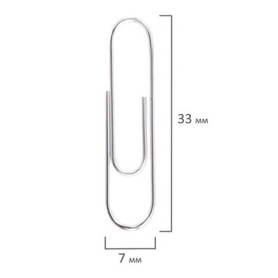 Скрепки ОФИСМАГ, 33 мм, никелированные, 100 шт., в картонной коробке, 225153