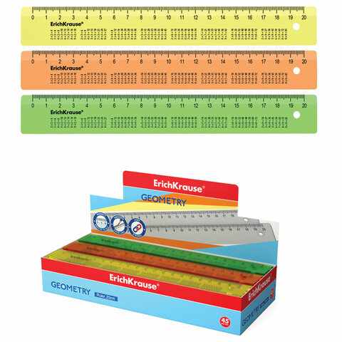 Прозрачная линейка с таблицей умножения ERICH KRAUSE "NEON" из высококачественного пластика.