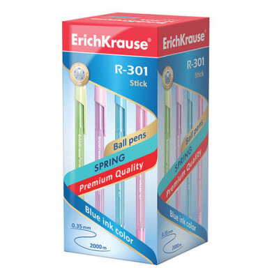 Ручка шариковая ERICH KRAUSE "R-301 Spring", СИНЯЯ, корпус тонированный ассорти, узел 0,7 мм, линия письма 0,35 мм, 31059