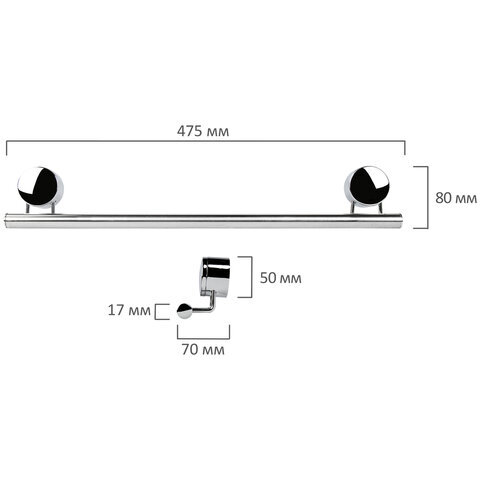 Держатель для полотенец LAIMA, ширина 46 см, хромированная сталь, крепление к стене, 607432