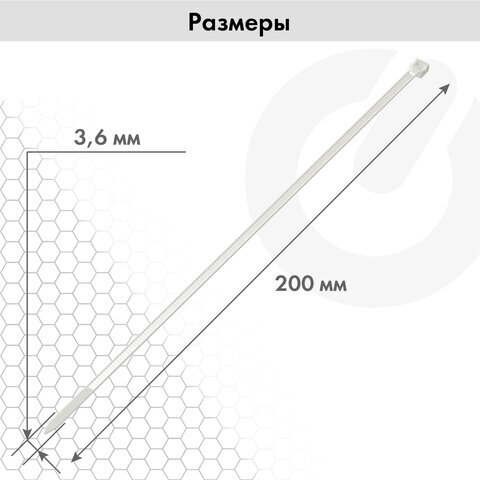 Стяжка (хомут) нейлоновая сверхпрочная POWER LOCK, 3,6х200 мм, КОМПЛЕКТ 100 шт., белая, SONNEN, 607921