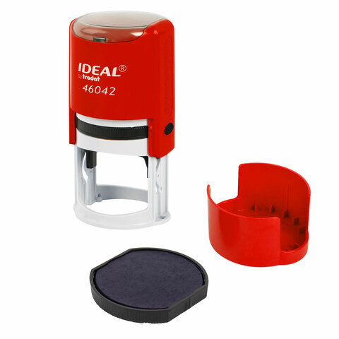 Оснастка для печатей оттиск D=42 мм, синий, TRODAT IDEAL 46042, корпус КРАСНЫЙ, крышка, подушка,125311