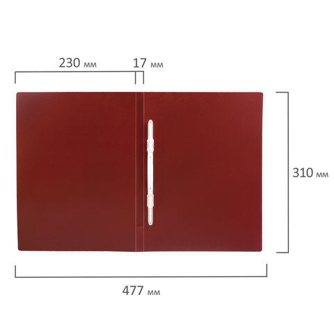 Папка с пластиковым скоросшивателем BRAUBERG "Office", красная, до 100 листов, 0,5 мм, 222643