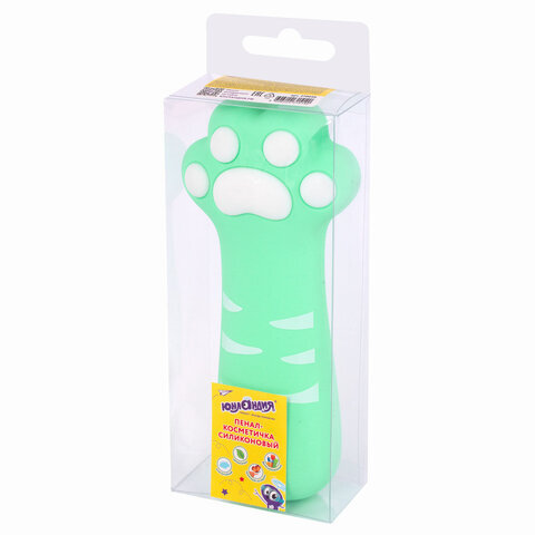 Пенал-косметичка ЮНЛАНДИЯ на молнии, силикон, "Paw Mint", мятный, 20х7 см, 270056