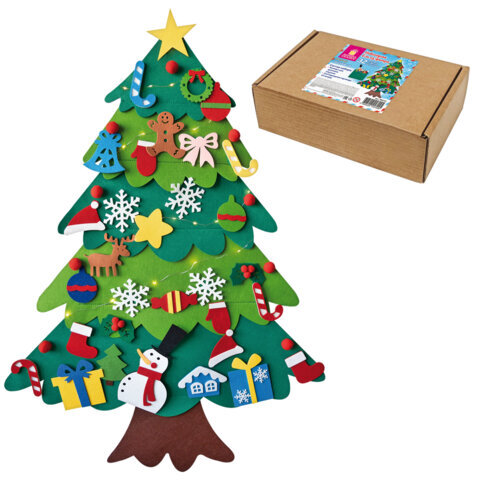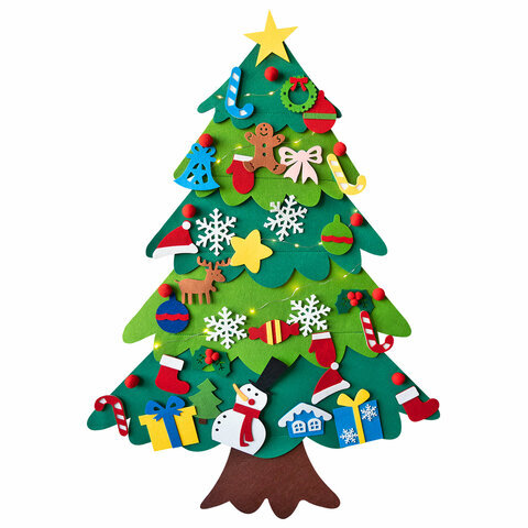 Фетровая ель с игрушками 102х68 см, 32 украшения, 3 м гирлянда, ЗОЛОТАЯ СКАЗКА, 592141