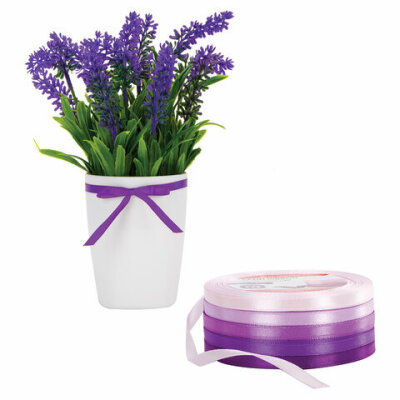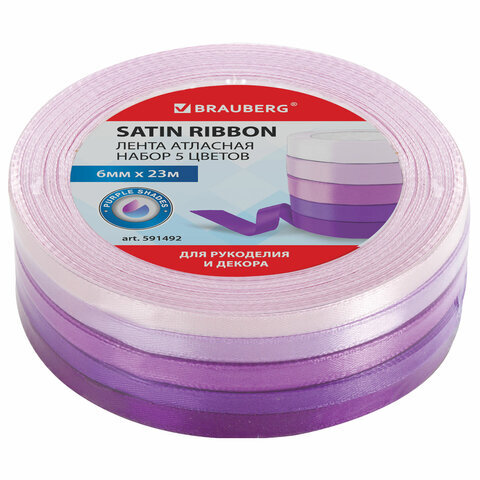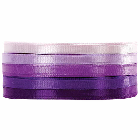Лента атласная ширина 6 мм, ФИОЛЕТОВЫЙ СПЕКТР набор 5 цветов по 23 м, BRAUBERG, 591492