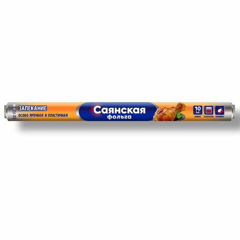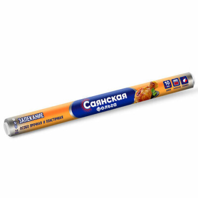 Фольга пищевая 44 см х 10 м, 14 мкм ПРОЧНАЯ, САЯНСКАЯ ФОЛЬГА в пленке, "Запекание" О10П-440х15