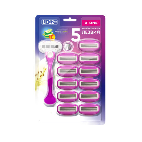 Бритвенный станок многоразовый женский, 5 лезвий, 12 кассет, плавающая головка, X-ONE (ИКС-УАН), 700021