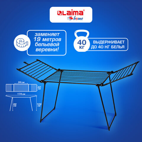 Сушилка напольная для белья раскладная, 3 зоны сушки, 19 метров, LAIMA HOME TRIO BLACK, 700470