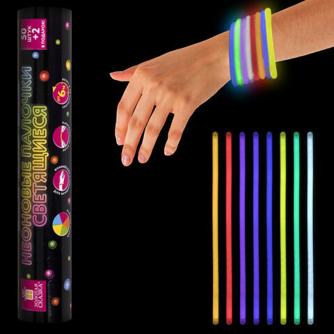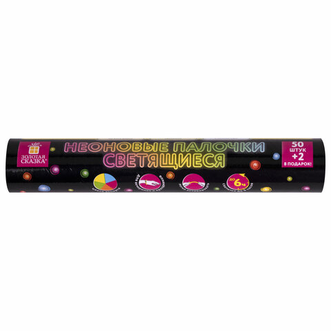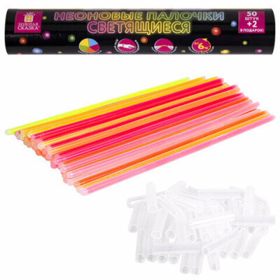 Светящиеся (неоновые) палочки, 50 штук + 2 в ПОДАРОК! в тубе, ассорти, ЗОЛОТАЯ СКАЗКА, 662597