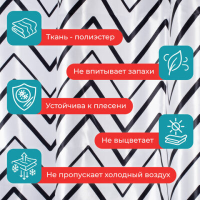 Шторка для ванной ПОЛИЭСТЕР, 180х180 см, кольца в комплекте, УЗОРЫ, PRIMILA (ПРИМИЛА), 700078