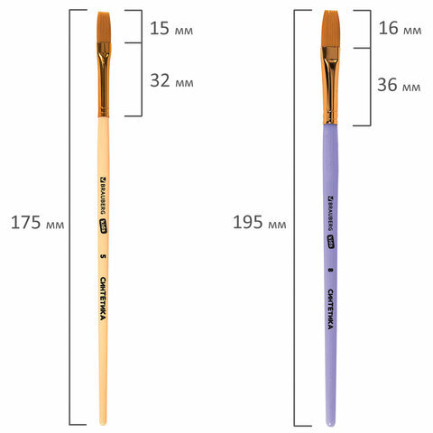 Кисти СИНТЕТИКА набор 5 шт. (круглые № 1, 2, 5, плоские № 5, 8), блистер, BRAUBERG KIDS, 201075