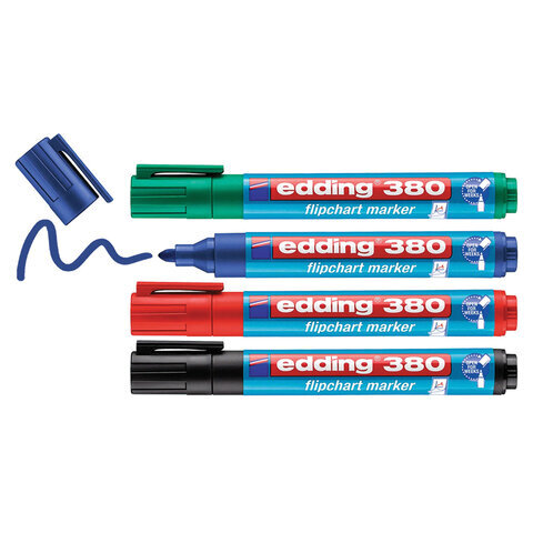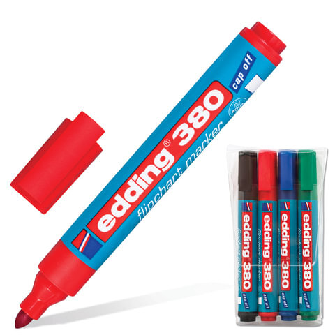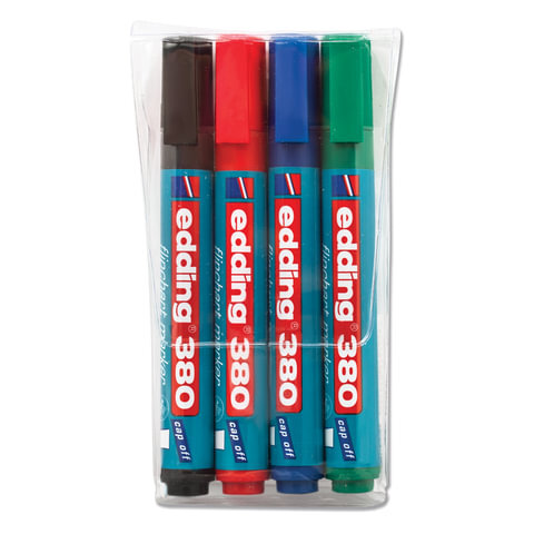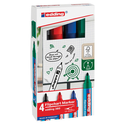 Маркеры для бумажного флипчарта EDDING 380, НАБОР 4 ЦВЕТА, НЕПРОПИТЫВАЮЩИЕ, 1,5-3 мм, E-380/4S