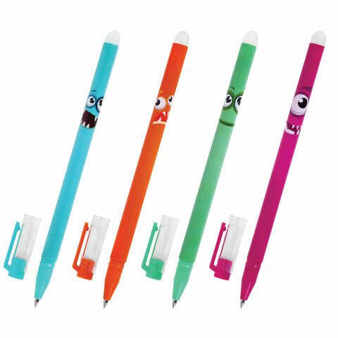Ручка стираемая гелевая ЮНЛАНДИЯ "Монстрики", корпус ассорти, СИНЯЯ, узел 0,5 мм, линия письма 0,35 мм, 144242