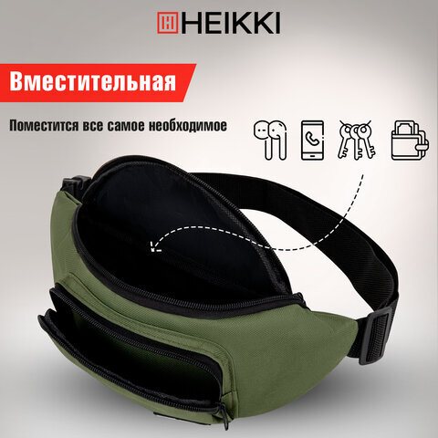 Сумка на пояс HEIKKI RIO (ХЕЙКИ), карман, регулируемый ремень, хаки, 30х12x10 см, 272616