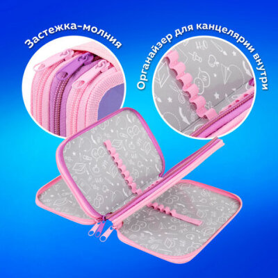 Пенал ПИФАГОР яркого дизайна с тремя отделениями выполнен из ламинированного картона, имеет тканевый торец. Удобные молнии с металлическим бегунком с трех сторон, прочные резинки для предметов. Вмещает до 42 предметов.