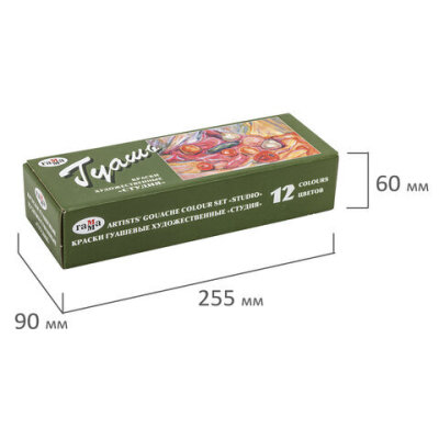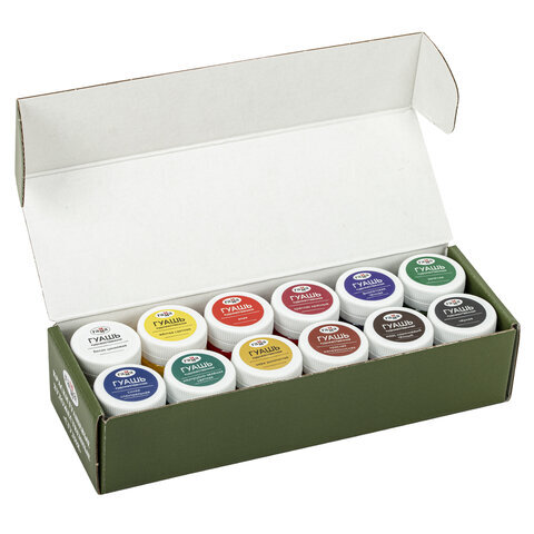Гуашь художественная ГАММА "Студия", 12 цветов по 40 мл, картонная упаковка, 221029