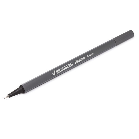 Ручка капиллярная (линер) BRAUBERG "Aero", СЕРАЯ, трехгранная, металлический наконечник, линия письма 0,4 мм, 142258
