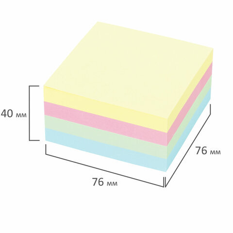 Блок самоклеящийся (стикеры) STAFF PROFIT ПАСТЕЛЬНЫЙ, 76х76 мм, 400 листов, 4 цвета, 129352
