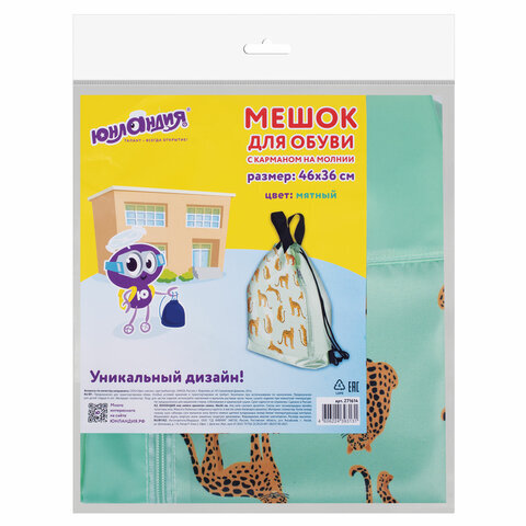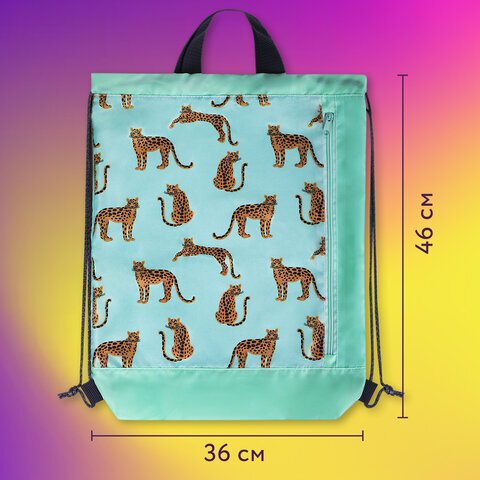 Мешок для обуви ЮНЛАНДИЯ, с ручками, боковой карман на молнии, 46х36 см, "Wild Cats", 271614