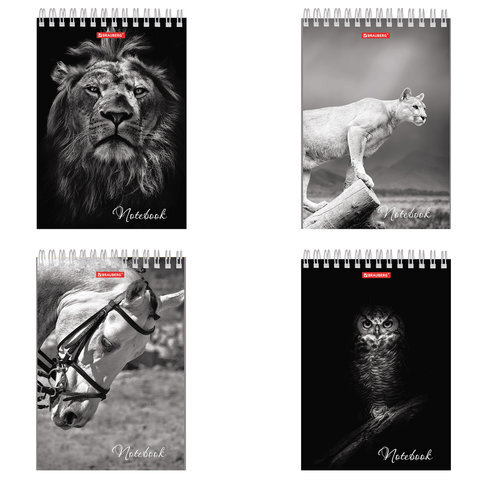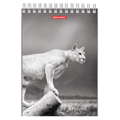 Блокнот А5 146х205 мм, 60 л., гребень, картон, жесткая подложка, клетка, BRAUBERG, "Животные", 129810