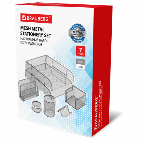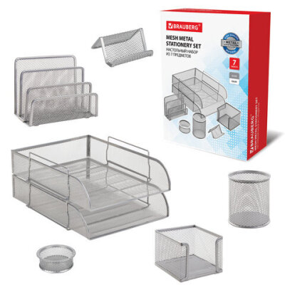 Настольный набор из металла BRAUBERG "Germanium", 7 предметов, серебристый, 231963