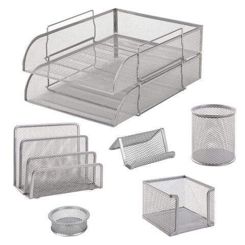 Настольный набор из металла BRAUBERG "Germanium" - это готовое решение для офиса. Позволяет содержать в порядке все письменные принадлежности и документы, а также эффективно их использовать.