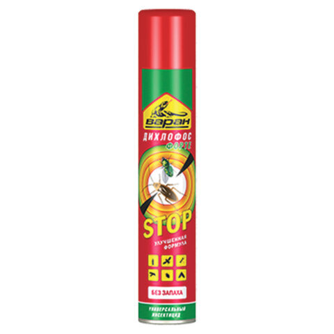 Средство инсектицидное ДИХЛОФОС "Варан Форте" предназначено для эффективного уничтожения нелетающих (муравьи, клопы, тараканы, блохи, кожееды) и летающих (мухи, комары, москиты, бабочки моли) насекомых в помещениях.