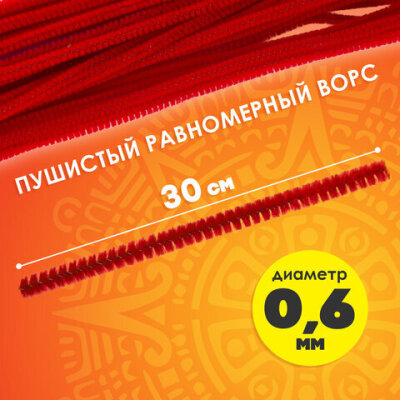 Проволока синельная для творчества "Пушистая", красная, 30 шт., 0,6х30 см, ОСТРОВ СОКРОВИЩ, 661533