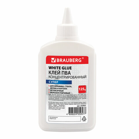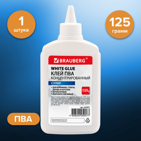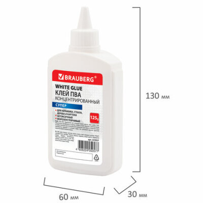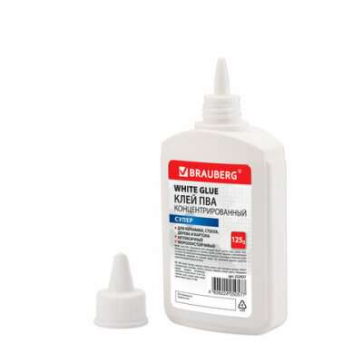 Клей ПВА СУПЕР BRAUBERG предназначен для склеивания изделий из керамики, ткани, кожи, дерева, бумаги, картона, фотографий.