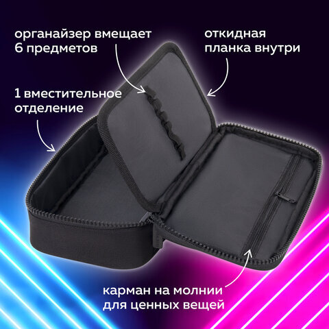 Пенал-органайзер BRAUBERG, 1 отделение, органайзер, полиэстер, 22х11,5x6 см, черный, 272309