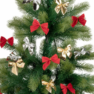 Оригинальным решением украсить новогоднюю ель станут елочные украшения ЗОЛОТАЯ СКАЗКА, выполненные в виде бантиков. Это идеальный выбор для тех, кто хочет добавить в свой праздничный декор нотку волшебства и очарования.